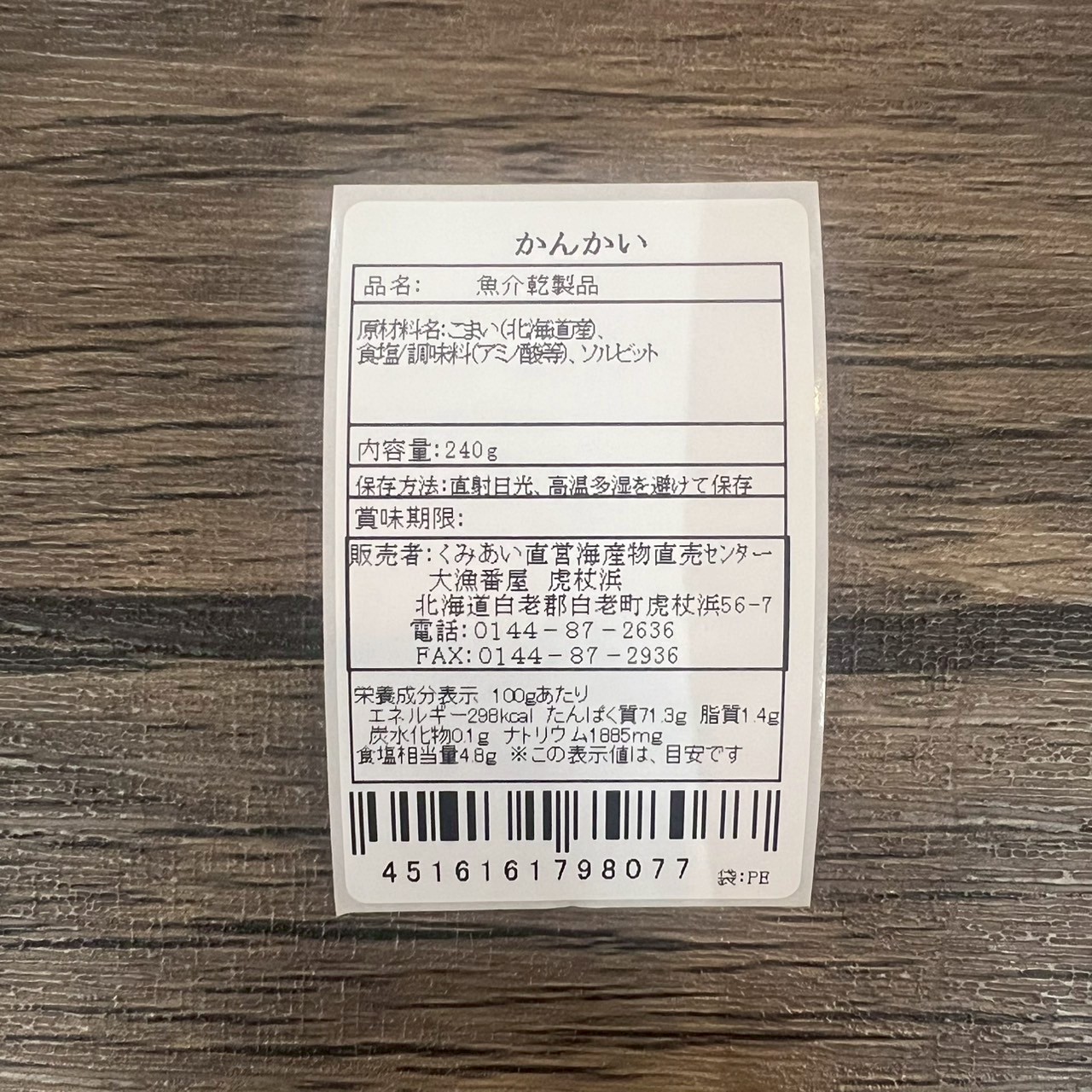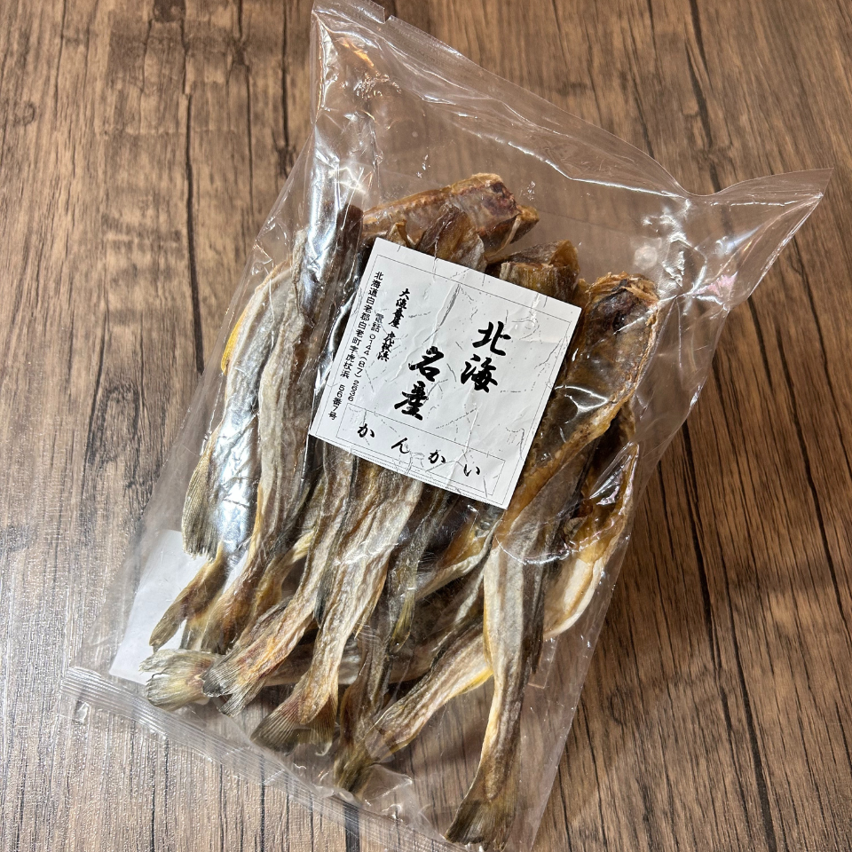 内容量:240g 賞味期限:4か月 「こまい」というタラ科の小魚を寒い時期に干して作るため、「寒海(かんかい)」と呼ばれるようになりました。 そのまま炙って食べたり、裂いてマヨネーズ+七味で食べるのが定番です!噛むほど旨味が出て、お酒の肴として人気!
